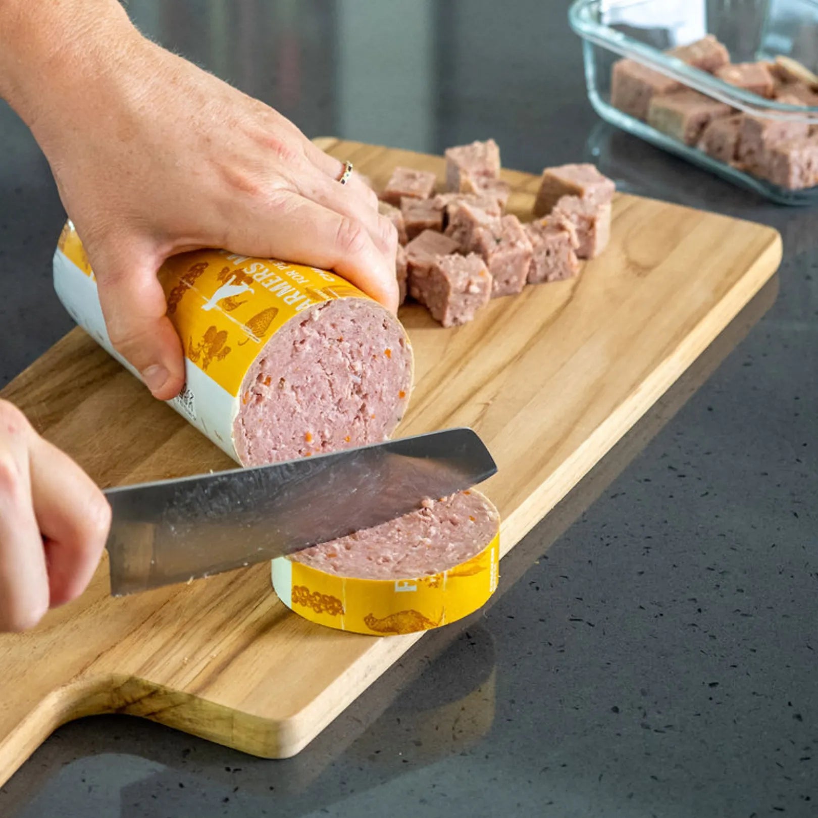 Our Farmers Mate for Pets chicken roll is made with bone broth simmered from premium Australian chicken bones accompanied with locally sourced fresh meat, vegetables, and berries. Our recipe aids in supplying your pet with essential nutrients, minerals, and antioxidants to maintain a healthy body and digestive system. Added seeds provide a protein punch partnered with apple cider vinegar to support joint health, aid with digestion whilst soothing allergies and irritations.