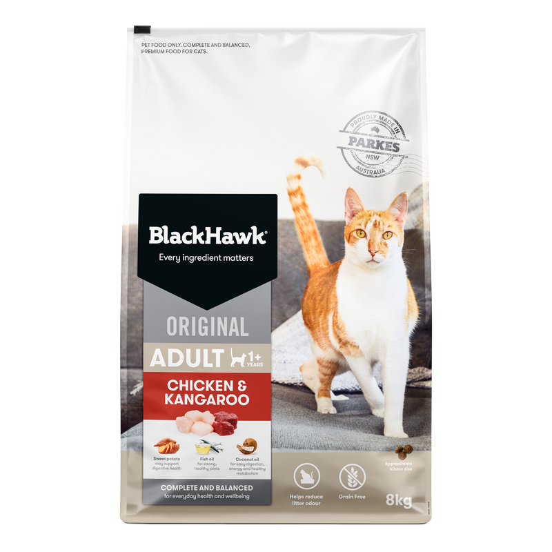 Black Hawk Chicken & Kangaroo is a high quality, Australian made diet for cats of all life stages.