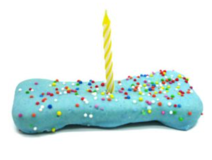 A birthday bone-shaped & chicken flavoured biscuit dipped in blue vanilla yoghurt and topped with sprinkles. There’s even a little hole in the middle for a birthday candle – which comes included, so all you need to do is tune up your vocal cords and get ready to sing Happy Birthday. This is going to be your dog’s best Woofday ever!