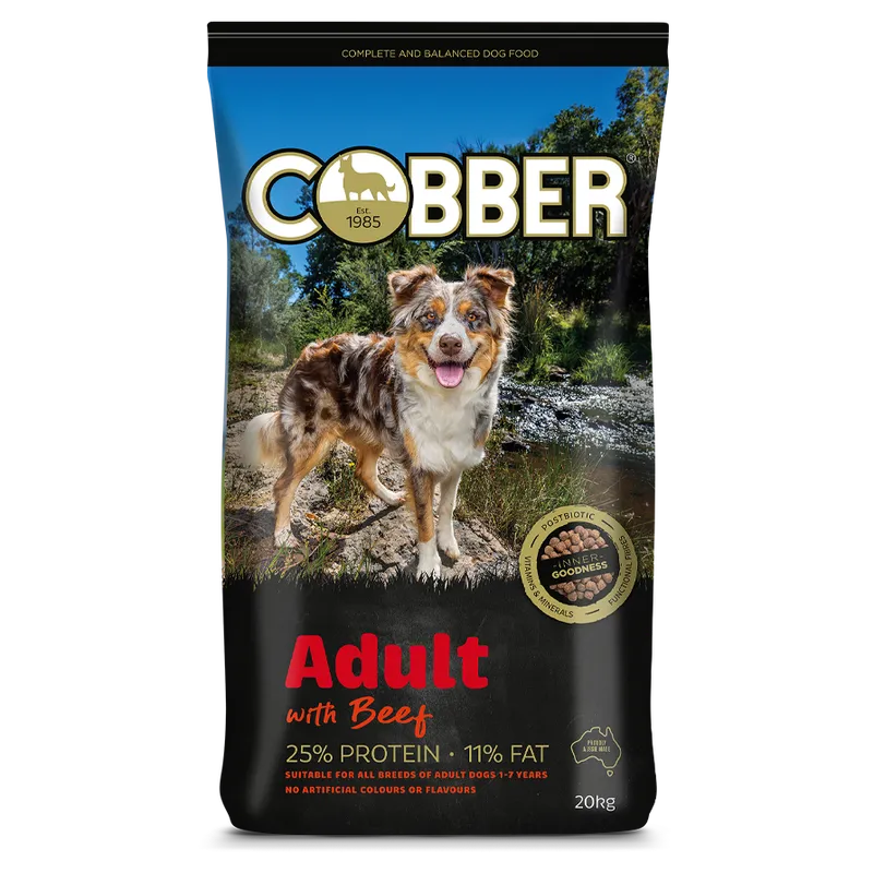 Every Cobber product has a curated balance of vitamins and minerals, functional fibres and a postbiotic. Made with Aussie meat, Cobber formulas are designed to help promote a healthy balance of gut bacteria to support digestion, nutrient absorption and immune function. This means that each product has been formulated to help dogs to get the most out of their food and lead happy, healthy lives.