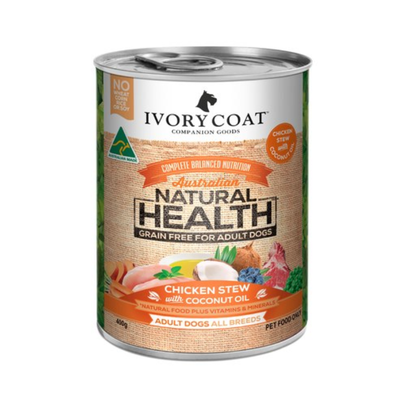Ivory Coat wet food provides crucial hydration delivered in a natural way dogs love, and Australian meat is our #1 Ingredient to deliver quality protein for lean muscle maintenance. Chicken is a good source of protein and nutrients to help maintain healthy organs. Natural superfoods are added as a source of antioxidants, as well as Omega 3 & 6 to help support healthy skin & coat. Carefully selected vegetables provide sources of grain-free complex carbohydrates and fibre to help support a healthy gut. A natural pre-biotic is also included to support healthy digestion, and essential vitamins and minerals ensure your best mate is provided with their complete daily nutrition.