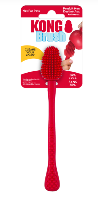 KONG Brush makes cleaning KONG Classic shaped toys quick and easy, because even the most skilled dog can miss a few spots. Insert brush into KONG, twist and scrub and the specially shaped, flexible bristles efficiently remove leftover treats. Cleans KONG Classic sized S-XXL. Rinse, shake and dry the brush and choose your next delicious KONG stuffing recipe. Antimicrobial, mold-resistant and BPA-free. Not dishwasher safe.