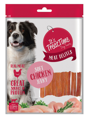 It's Treat Time' Meat DELITES are perfect for your pooch, giving them a protein rich treat that is low in fat and great for their teeth & gums.