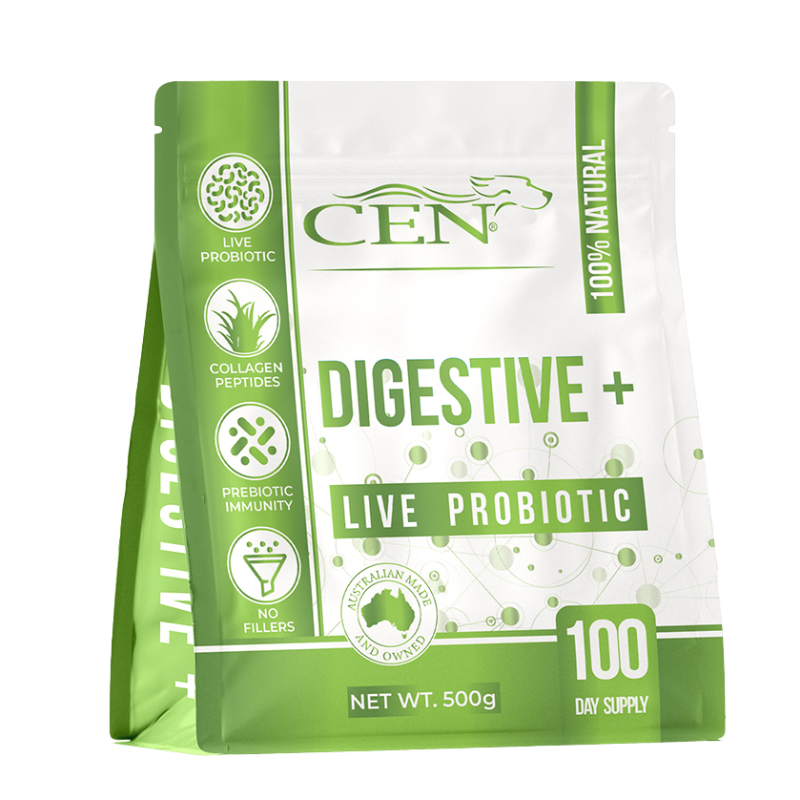 The inclusion of Live Probiotic S. boulardii contained in Digestive+ is unique in that it can’t be killed by antibiotics. It helps restore your dog’s microbiome during and after antibiotic use and has been successfully used to treat Yeast Infections and Candida.