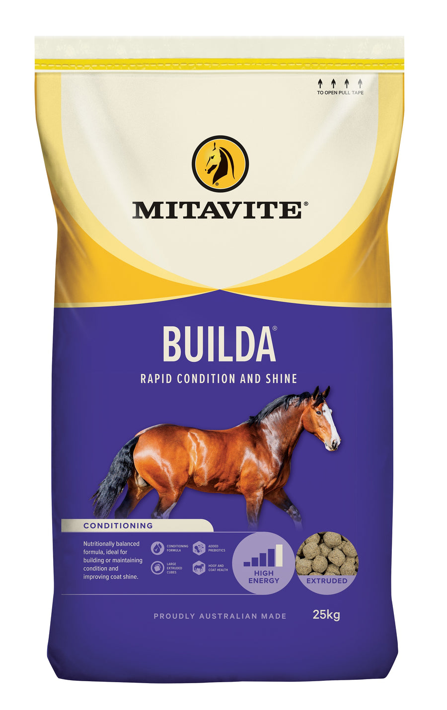 Combined with quality amino acids from Canola Meal and cool conditioning from Rice Bran Oil, Builda is the perfect choice for weight maintenance.