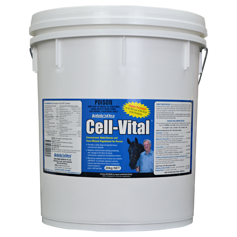 Cell-Vital is a multi-vitamin and trace-mineral supplement which is ideal for resting or working horses when their diet is low or inadequate in nutrients required for overall health and vitality.