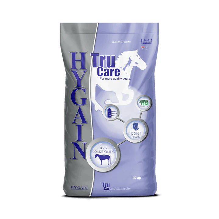 He is your BFF, you love him heaps and want him to be happy and healthy, but he is not as flexible as he used to be, he drops weight easily, especially in the cold winter months and his teeth have seen better days. Your horse is aging, a natural process, just like in humans. We understand that our senior friends require special nutritional attention due to decreases in metabolic and digestive efficiencies that accompany the ageing process. We have taken these changes into consideration and developed HYGAIN TRU CARE , which provides your horse with higher levels of nutrients that are essential to maintain joint health and mobility, body condition and general well-being. We assist you in providing TRU CARE for your older horse.