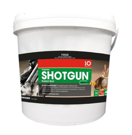 Pindone based rabbit bait. Highly effective for rabbit control. Convenient and safe to use. Certified Sterilised: We use only the highest grade sterilised oats with the anti-coagulant Pindone to ensure rapid uptake and control. SHOTGUN is certified and registered for sale in all states inc. WA. Free warning Gate sign included. Made in Australia. Dose Rates & Administration Instructions: Follow the instructions on the label provided. Poisoning program includes steps; 1. Monitor site and assess information 2. Notify Neighbours 3. Lay Bait 4. Collect Uneaten Bait/Cover Trail 5. Collect Rabbit Carcasses Active Constituent: 0.5g/kg Pindone Sodium Salt