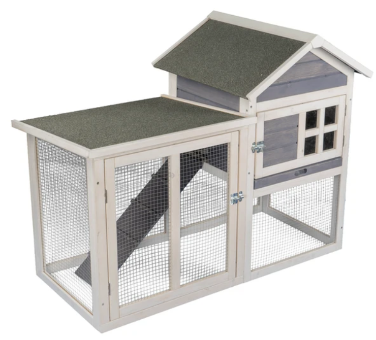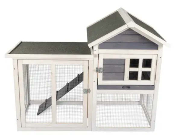A cute and spacious outdoor haven for rabbits or guinea pigs, allowing them to enjoy fresh air and grass while staying protected.