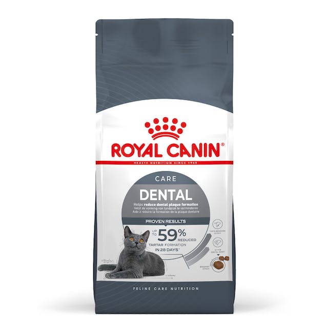 Up to 59% reduced tartar formation in 28 days, when fed with ROYAL CANIN® DENTAL CARE dry formula.* *Royal Canin internal study