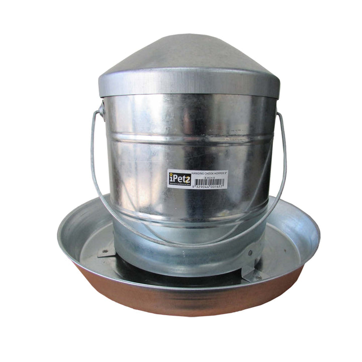 Galvanised continuous feeder for chooks. Large holding capacity. Will hold approximately 6kg of chook feed. Chook feeders available in a variety of sizes.