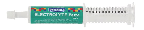 An Electrolyte Paste with B Group Vitamins, Vitamin E and Folic Acid for horses. Used to rapidly restore electrolytes loss due to strenuous exercise and sweat loss during training, racing, competition and hot weather conditions and as supplemental source of vitamins for hardworking horses. Vetsense Electrolyte paste is suitable for gallopers, pacers, endurance horses, polo ponies, show horses etc. after work and before or after transportation. The paste has a distinctive aniseed flavor to assist with palatability and acceptance by the animal.